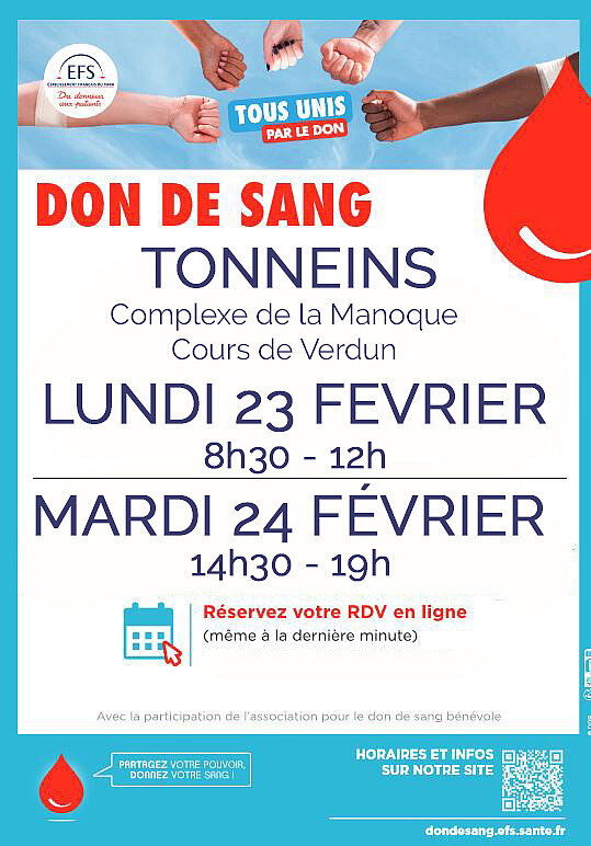 Donner du sang est un geste de générosité. De nombreuses personnes en ont besoin. Merci pour votre coopération.