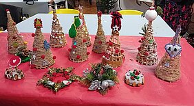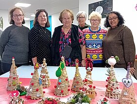 Les deux photos ci-dessus nous montrent le double résultat de l'activité décoration de fêtes organisée récemment par le centre socio-culturel Le Point Commun de Tonneins. D'un côté, les réalisations magnifiques des personnes aui se sont inscrites à cette activité. De l'autre, la satisfaction des habitants qui y ont participé et se sont
