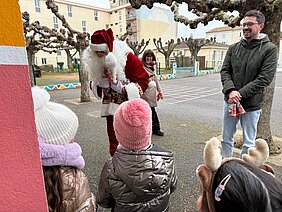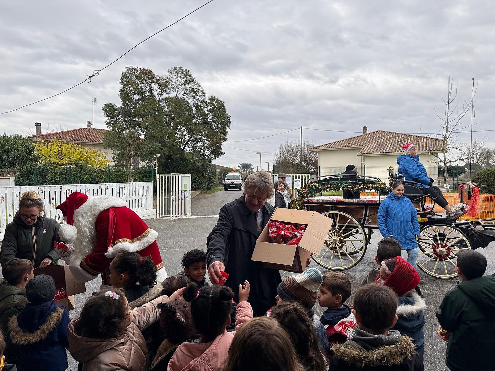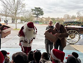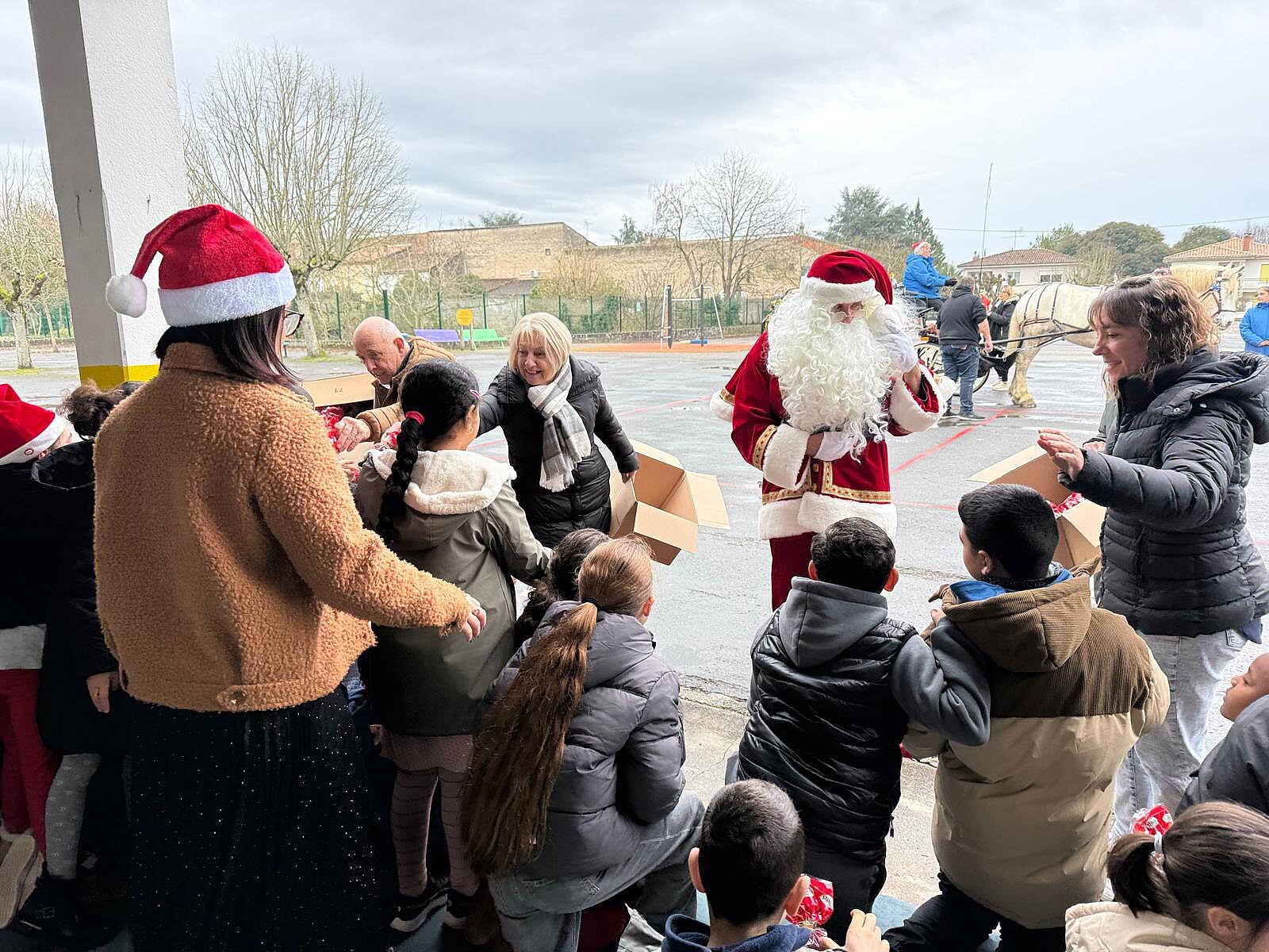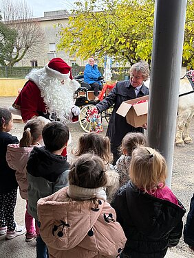 Démarrent aujourd'hui les festivités de fin d'année à Tonneins. Le Père Noël est arrivé chez nous ce matin en calèche et consacre toute la journée à faire le tour des écoles. Les enfants des écoles Notre Dame, Françoise Doleto, Victor Hugo et de la crèche lui ont dispensé ce matin un accueil très très chaleureux.