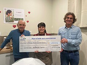 Chèque d'aide au loyer pour l'institut de beauté Ézalia