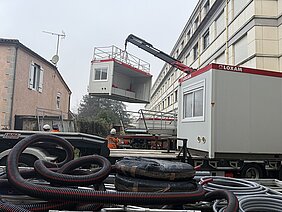 Les photos que nous partageons ont été prises hier. Le local de chantier a été installé à l'ancienne Manufacture des Tabacs afin que la deuxième phase des travaux prévus puisse démarrer dans les dates programmées par l'EPF Etablissement Public Foncier Nouvelle Aquitaine.