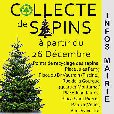 Sept points de recyclage sont mis à votre disposition pour que vous y déposiez vos sapins de Noël. Merci pour votre coopération.