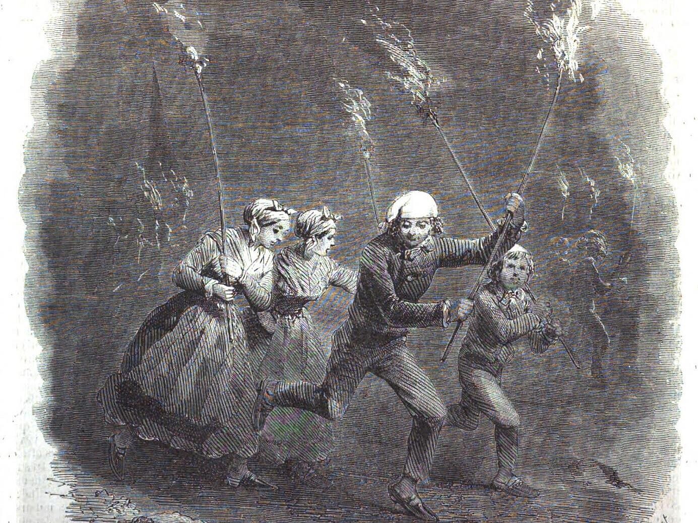 « … Nous aimons mieux pour notre part, dans leur poétique rusticité, ces feux sur les coteaux du village, ces courses à travers les champs, à la lueur de torches résineuses, pour annoncer à la terre la venue de ce jour d’universelle réjouissance.