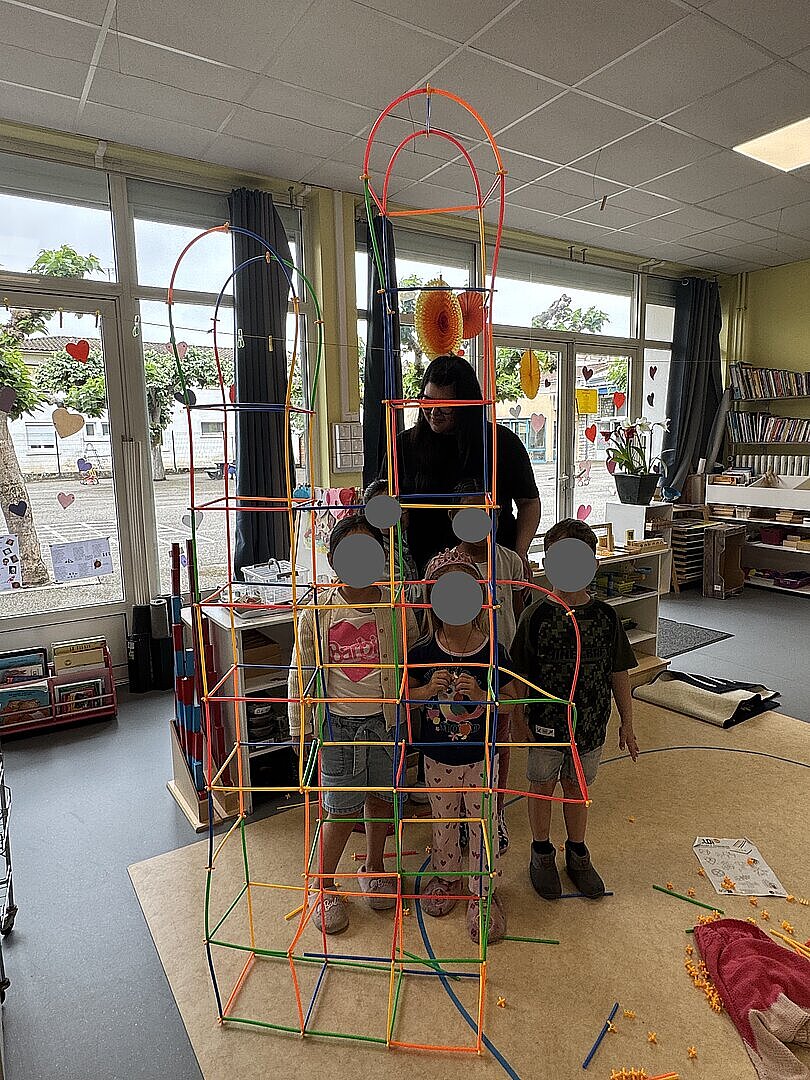 A l’école Marie Curie : les enfants font tourner la roue pour savoir quel défi ils devront relever avec les familles à la maison ou à l’école : construire la tour la plus haute possible, un dessin collectif, une recette de cuisine. Ils ont aussi participé à une balade sur les quais de la ville, une visite à la bibliothèque, la réalisation de cabanes ... Une mobilisation forte de l’équipe pédagogique, du périscolaire, des familles et des enfants !