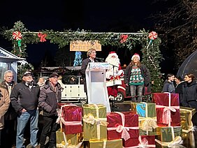 Le Père Noël, le maire Dante Rinaudo et son adjointe à l'Évènementiel Béatrice Vidalie ont inauguré vendredi soir Tonn'Village de Noël Place Zoppola. De nombreuses associations, animations, stands et manifestations vous y attendent. Venez à la gare du petit train et baladez-vous dans Tonneins.
