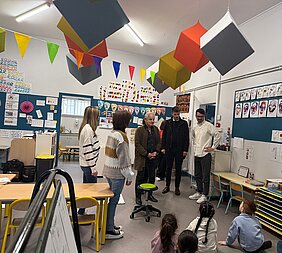 En dialoguant avec les équipes pédagogiques, les enseignants, les ATSEM et les agents du service restauration scolaire, il a pu apprécier le dévouement qui habite l’ensemble des personnels au contact de nos enfants.