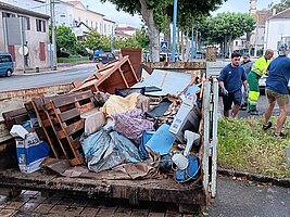 Nos services techniques aident les sinistrés à débarrasser leurs caves inondées.